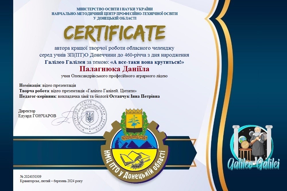 Вітаємо Козієву В.В. викладачку з української мови та літератури Олександрівського професійного аграрного ліцея з отриманням ГРАН ПРІ у VI відкритому онлайн-фестивалі ” Шевченко в колі сучасної молоді” в номінації ” Авторський вірш” та студентку 3-го курса Алієву Альбіну за активну участь в номінації ” Присвята Кобзареві”.
