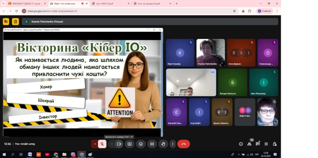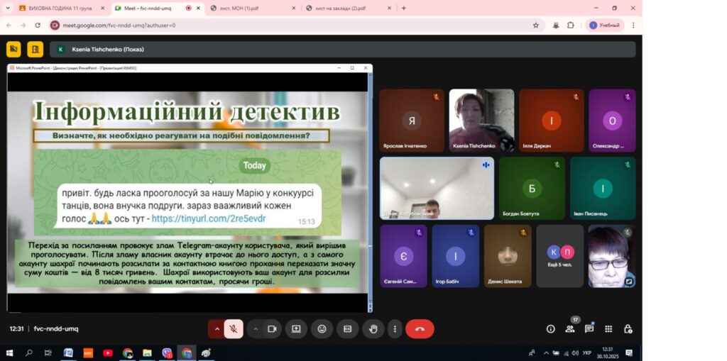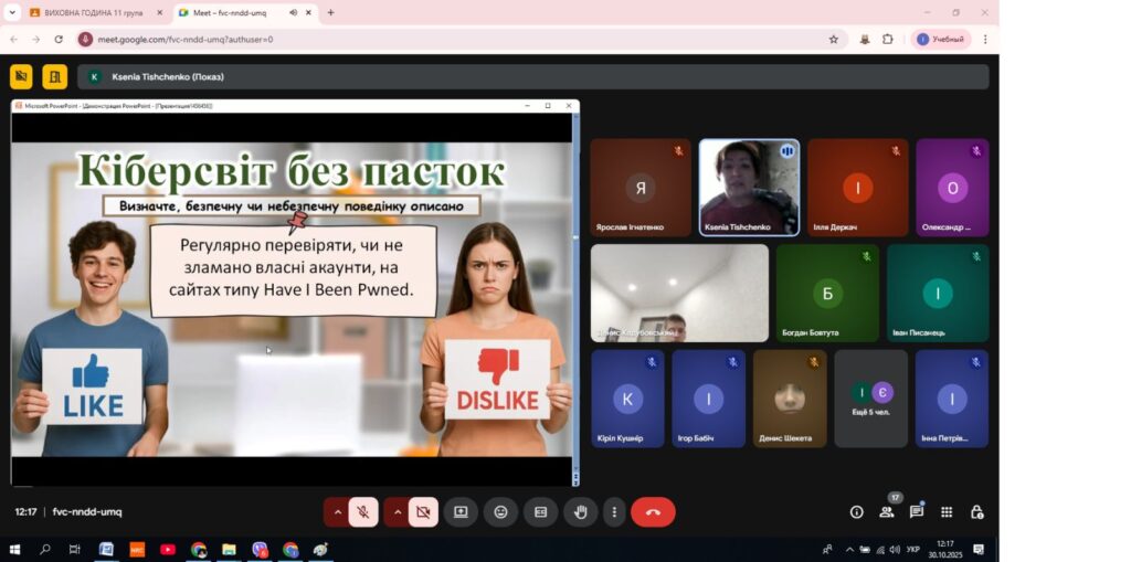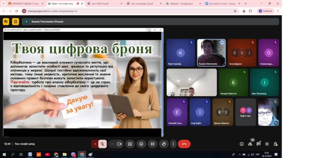 В Олександрівському професійному аграрному ліцеї практичним психологом Тищенко Оксаною з учнями була проведена година спілкування ” Твоя цифрова броня”