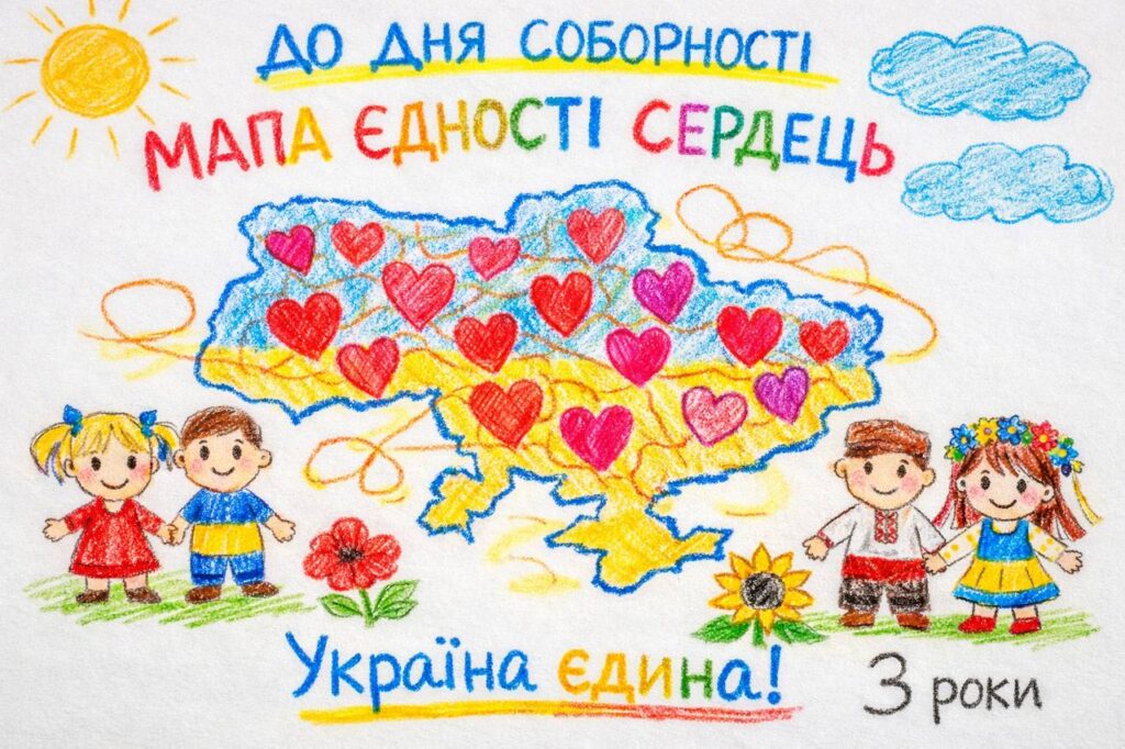 Кузьменко Альбіна (21 група) та Коломієць Олександр (22 група), здобувачі освіти Олександрівського професійного аграрного ліцею, долучаються до обласної акції до Дня Соборності України “Мапа єдності сердець”-символу неподільності України, спільних цінностей та незламності сили нашого єднання.