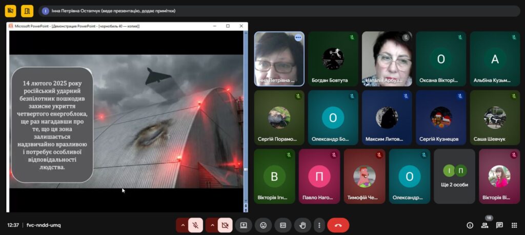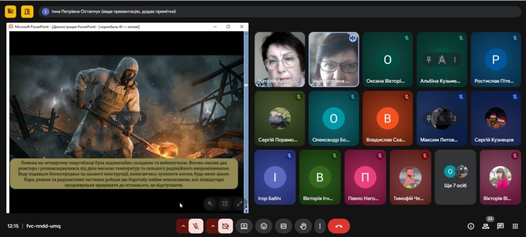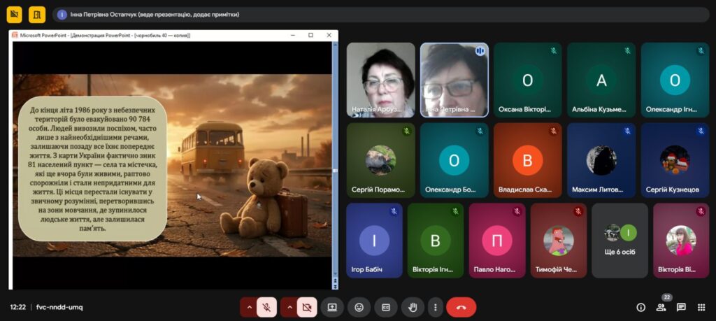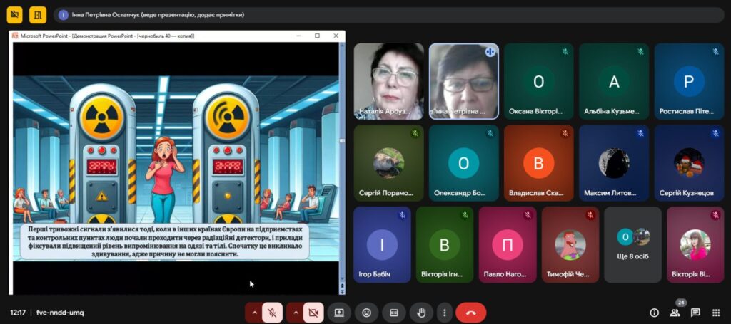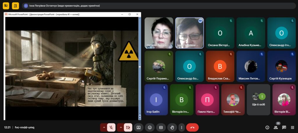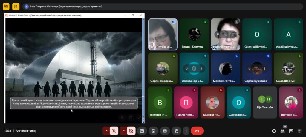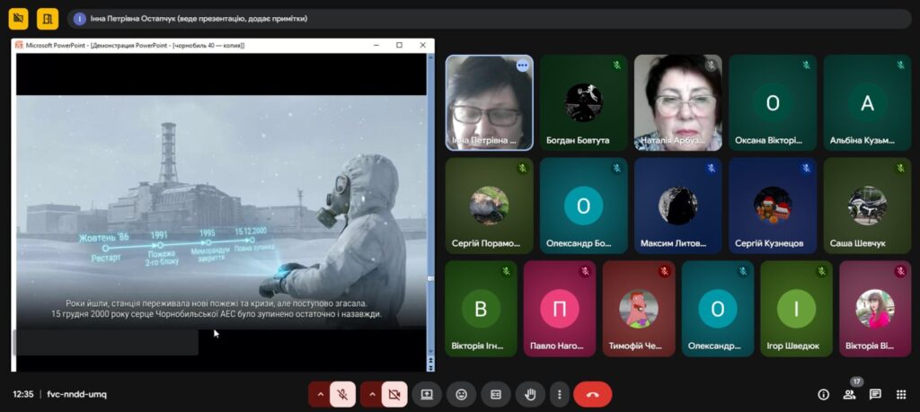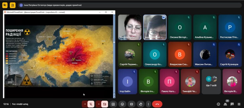 Напередодні Дня пам’яті, присвяченому сороковим роковинам Чорнобильської катастрофи , з метою вшанування мужності, самовідданості та високого професіоналізму учасників ліквідації аварії ,увічнення пам’яті загиблих, , в Олександрівському професійному аграрному ліцеї було проведено Остапчук Інною виховну годину «Чорнобиль: 40 років болю. Хто ми в цій трагедії?»