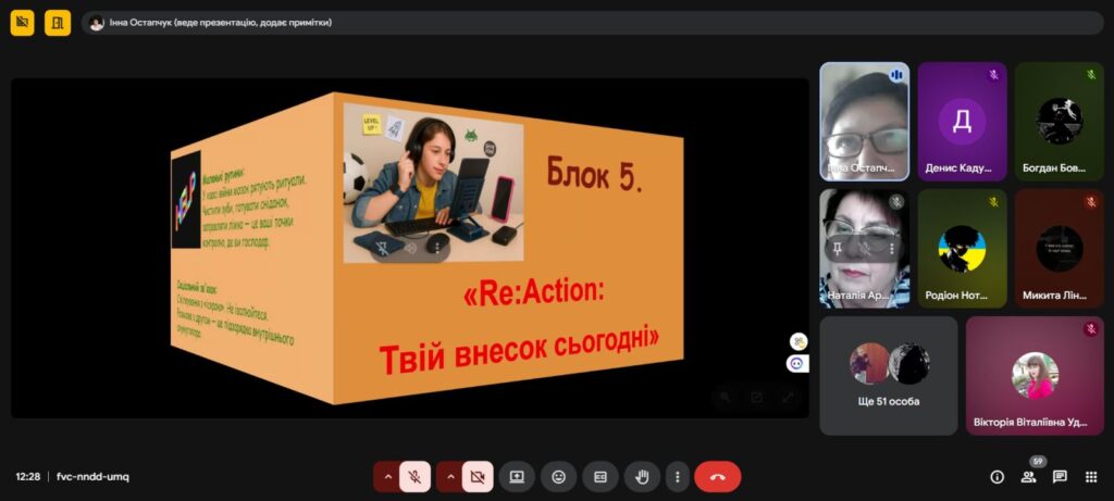 – Блок «Re : Action: Твій внесок сьогодні (практичний блок). (Розглянули інструменти для дії сьогодні і в майбутньому.)